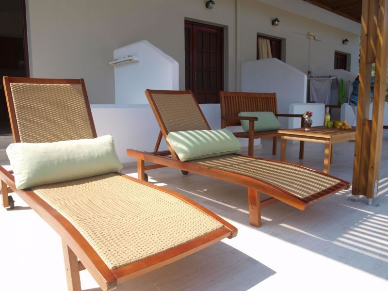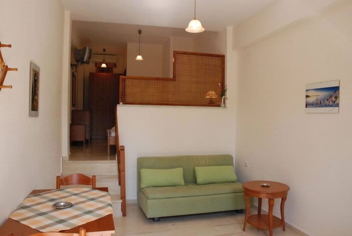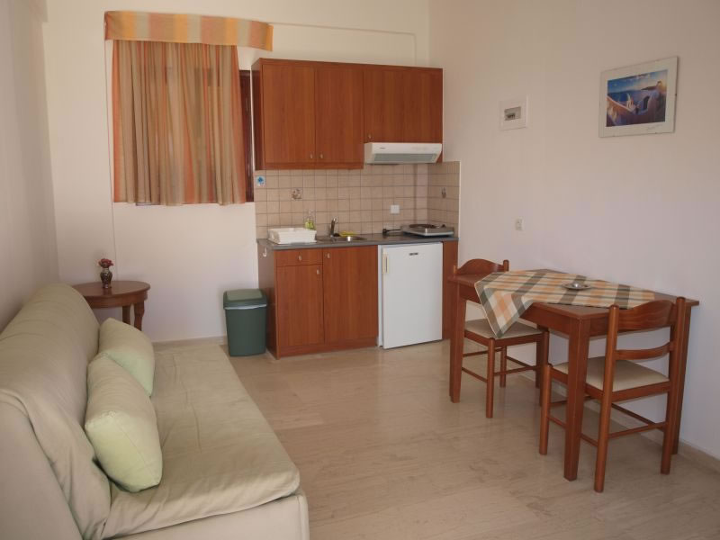 The studios offer fully equipped kitchen, double bed, sofa-double bed, bathroom, air-conditioning, satellite TV, wireless internet, balcony with table, chairs and comfortable sunbeds at the garden with view to the sea.